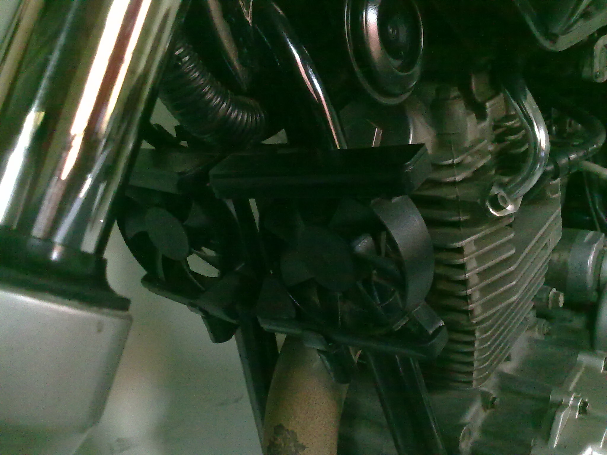Terakhir tinggal tata letak kipas, buat dudukan dari sisa plastik tebal tadi dan kokohkan dengan mur baut & pasang di depan blok mesin. namun sebelum semuanya dipasang ada baiknya di cat hitam agar sewarna dngn rangka motor. jangan lupa rapikan kabel agar terlihat serasi 😉
