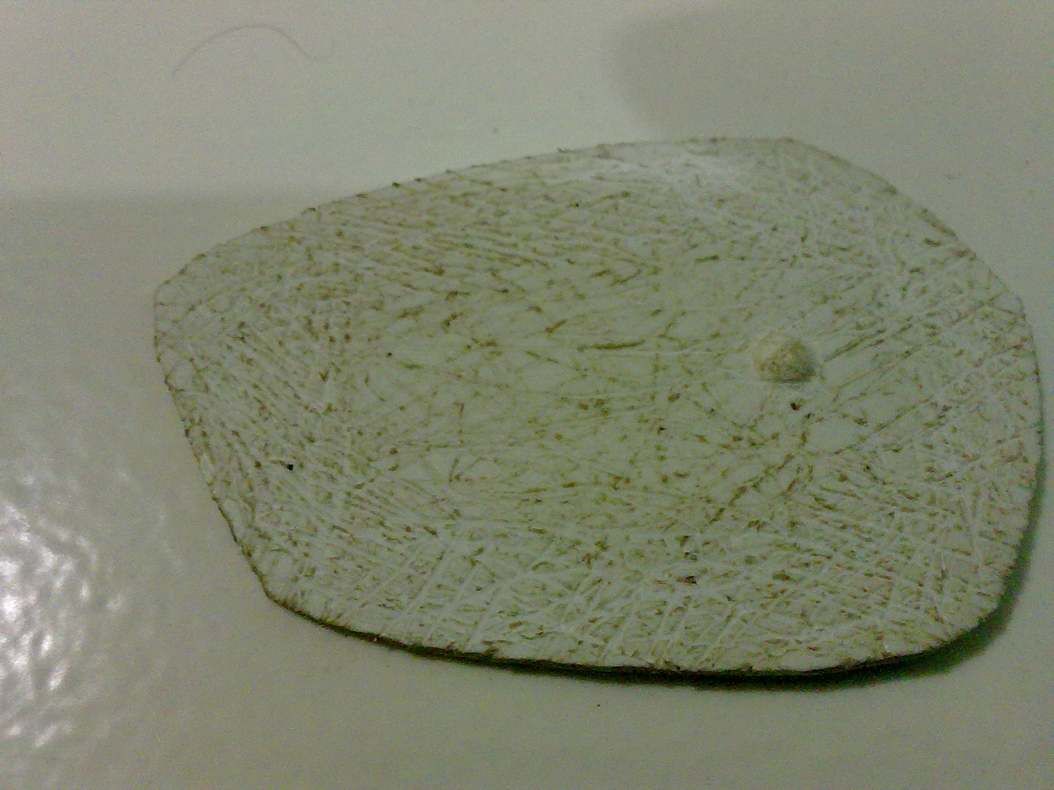 Maka pertama-tama kita kasarkan dulu kedua plastik dengan paku, jika ujung paku terlalu tumpul potong sedikit ujung paku dengan tang, plastik digurat-gurat dengan paku atau bisa juga dengan ampelas yg paling kasar hingga berbentuk seperti ini: