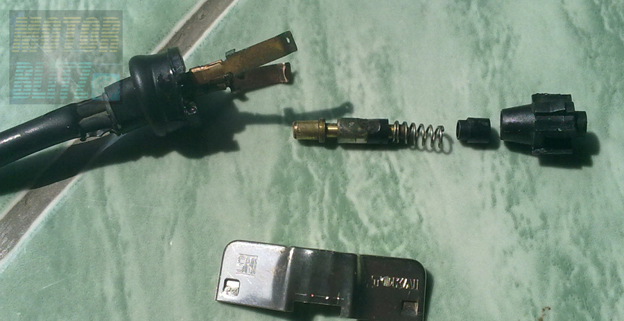 Kalau bro & sis pernah baca tentang saklar starter kopling disini mungkin caranya hampir sama dan ternyata setelah setahun belum pernah mengalami kerusakan, mungkin karena kedua plat tembaga setelah dilapisi besi jadi lebih tebal sehingga lebih awet. Tapi kalau misalnya bro sis mau beli part ini harganya sekitar 25 ribu, gimana? tapi kalau dipikir-pikir mending benerin sendiri terus duitnya buat jajan baso… ![]()