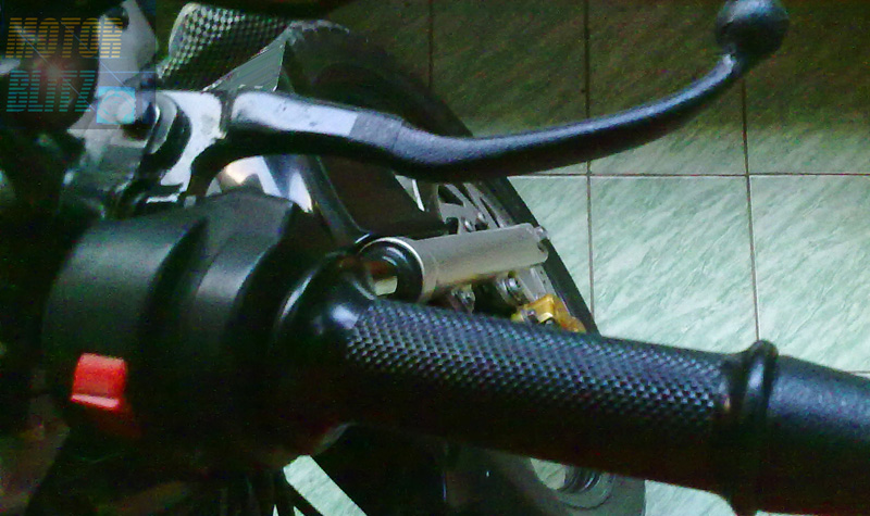 Kalau sudah siap kita buka dulu saklarnya, caranya dorong keatas pake obeng bagian bawah saklar yang ada di ujung tuas rem seperti ini: