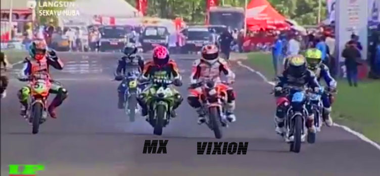 Seperti biasa awal start lap pertama persaingan diantara pembalap sangat ketat dan kali ini Rapid Topan mampu menempati posisi pertama, disusul oleh Andi di posisi kedua dan Hokky diposisi ketiga. Hingga lap ketiga Topan, Andi, dan Hokky ini bersaing ketat salip menyalip, sedangkan Ilham dengan MX-nya menempati posisi ketujuh & Bule dengan Vixion-nya menempati posisi kedelapan. Di lap kelima Topan masih memimpin walaupun sempat diposisi ketiga di lap keempat dan Ilham mampu menyodok ke posisi keenam dengan MX-nya.