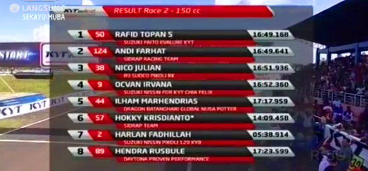 Hasil akhir Indoprix 150cc Skyland Sekayu :