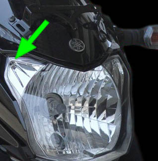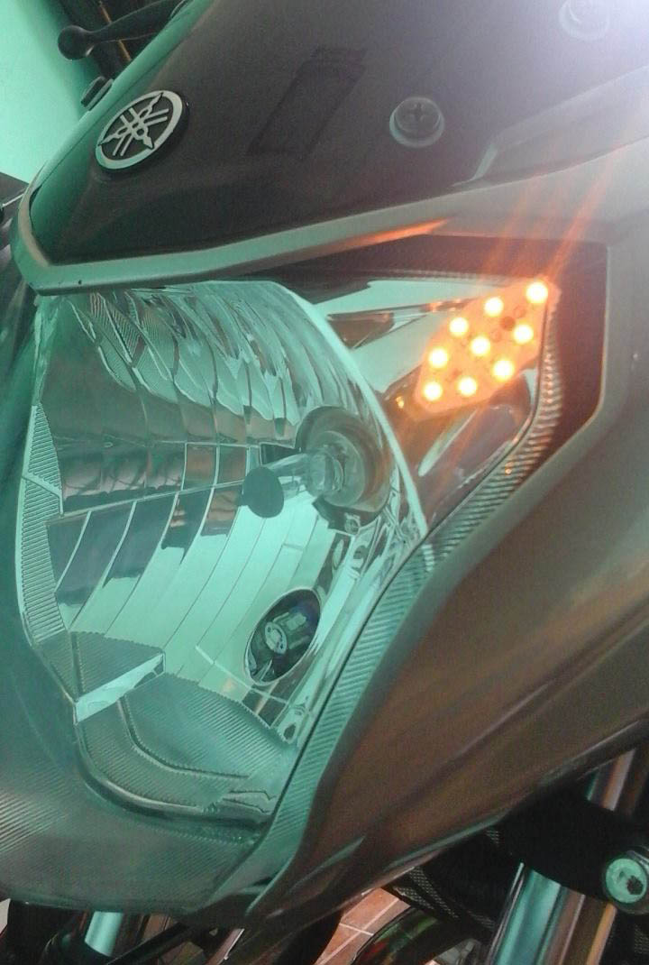 Cara pasang lampu sein ini sepertinya sedikit akal – akalan yaitu dengan memanfaatkan dua lubang kecil di pinggir headlamp new Vixion.