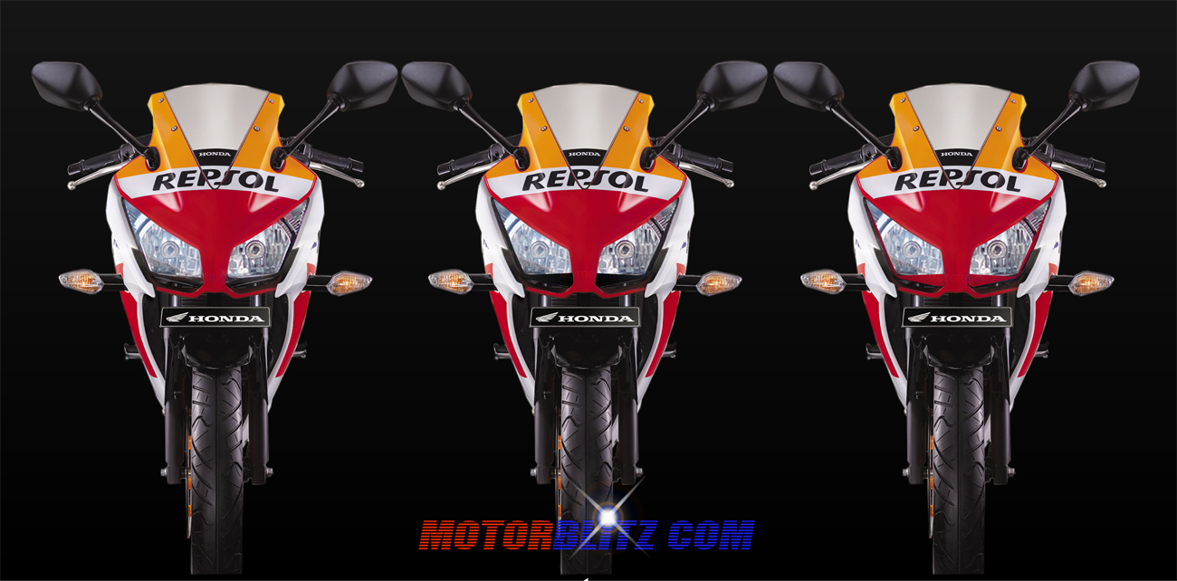 Untuk CBR150R lokal versi Repsol Bro & Sis bisa menambahkan scotlite warna merah atau hitam di bawah headlamp. Kebetulan MB juga punya contoh model skotlet headlamp CBR150R lokal versi Repsol yang lain nih, coba kita lihat perbandingan CBR150R versi Repsol baik yang menggunakan skotlet hitam maupun merah :