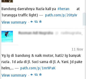 Kadang dari tweet mereka ada juga tweet dengan link peta lokasinya sehingga kita bisa tahu tempat dimana lokasi razia kendaraan, kalau ga ada coba mention langsung tanyakan kapan dan dimana razianya & jangan lupa pasang photo profil yang paling cakep biar langsung dibales.