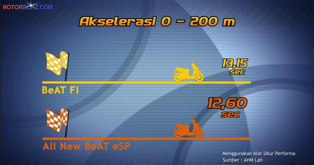 Dibandingkan dengan Honda Beat Fi akselerasi 0 – 200 meter dapat diraih oleh Honda BeAT eSP dengan lebih cepat yaitu 12,60 detik sedangkan Honda Beat Fi hanya 13.55 detik.
