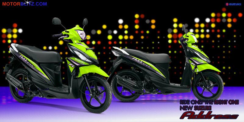 Published Desember 27, 2014 at 800 × 400 in Warna – warni Suzuki Address 115 cc dari warna kuning, jingga, hijau, ungu, merah muda dan biru.