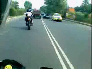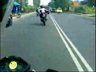 Aksi salip – menyalip terjadi beberapa kali hingga akhirnya Rider Yamaha di-gaplok oleh Wanita yang sedang diboncengnya.