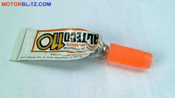 Sekarang tinggal masukan karet ke tutup lem, biar kelihatan rapih bagian karet yang bekas dipotong diletakan di bagian bawah tutup lem. Coba ditest pasang dulu :