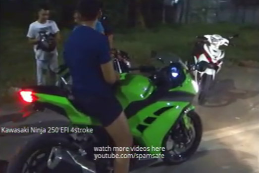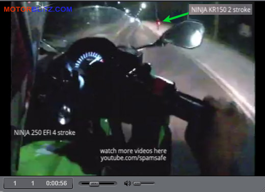 Namun di menit 1.09 Ninja 250 FI berhasil mendekati Ninja 150 R :