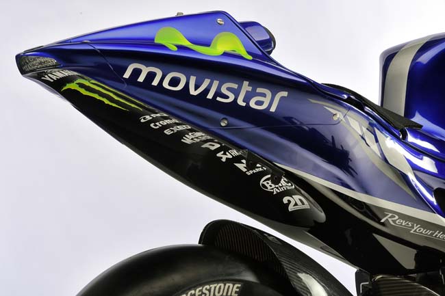 Published Februari 3, 2015 at 650 × 433 in Detail photo dan spesifikasi New YZR-M1 Yamaha Movistar Livery MotoGP 2015.