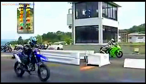 Melihat adu drag dengan dua jenis sepeda motor yang berbeda berlawanan karakter sepertinya menarik juga. Salah satu contoh dari kedua motor ini adalah Kawasaki Ninja 250R dan Yamaha WR250X. Kawasaki Ninja 250R yang berkarakter motor sport tulen ini diadu dengan Yamaha WR250X yang berkarakter motor cross.