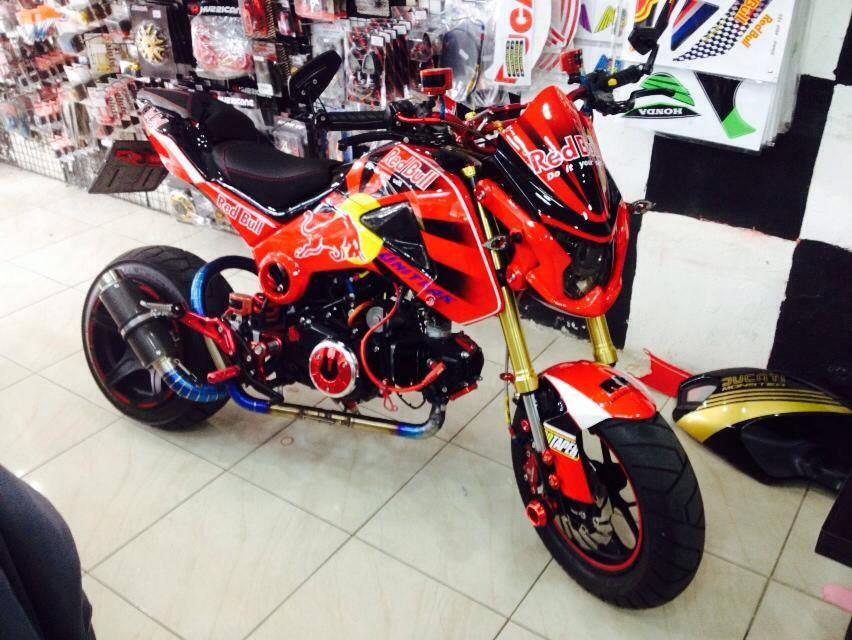 Terlihat dari photo Honda Grom standar keluaran tahun 2014 di atas, desain Honda Grom ini tidak kalah keren dengan Moge ber-cc besar, apalagi sudah di modifikasi. Nah untuk Honda Grom atau Honda MSX 125 modifikasi ini Bro & Sis bisa lihat beberapa contohnya di bawah ini, cekidot :