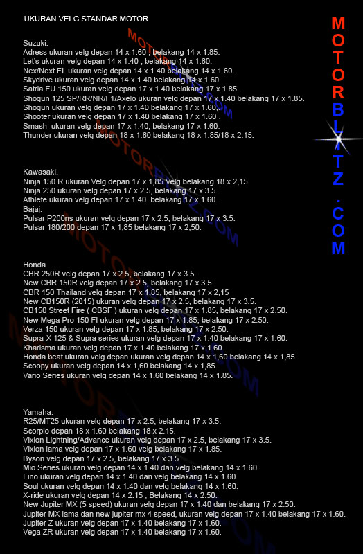 Published Agustus 4, 2015 at 524 × 800 in Ukuran velg standar motor Honda, Suzuki, Yamaha, dan Kawasaki.