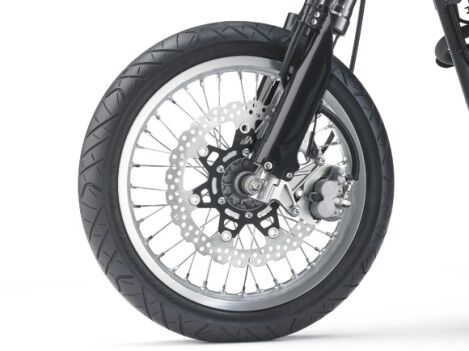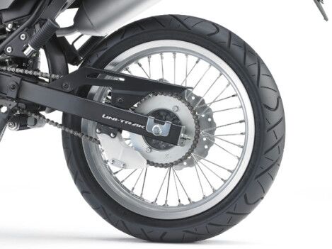 Tidak seperti D-Tracker 150 versi terdahulu New D-Tracker 150 sekarang telah dilengkapi dengan roda berdiameter 17 Inchi, selain itu untuk sistem suspensi depan New D-Tracker 150 sudah menggunakan shockbreaker upside down.