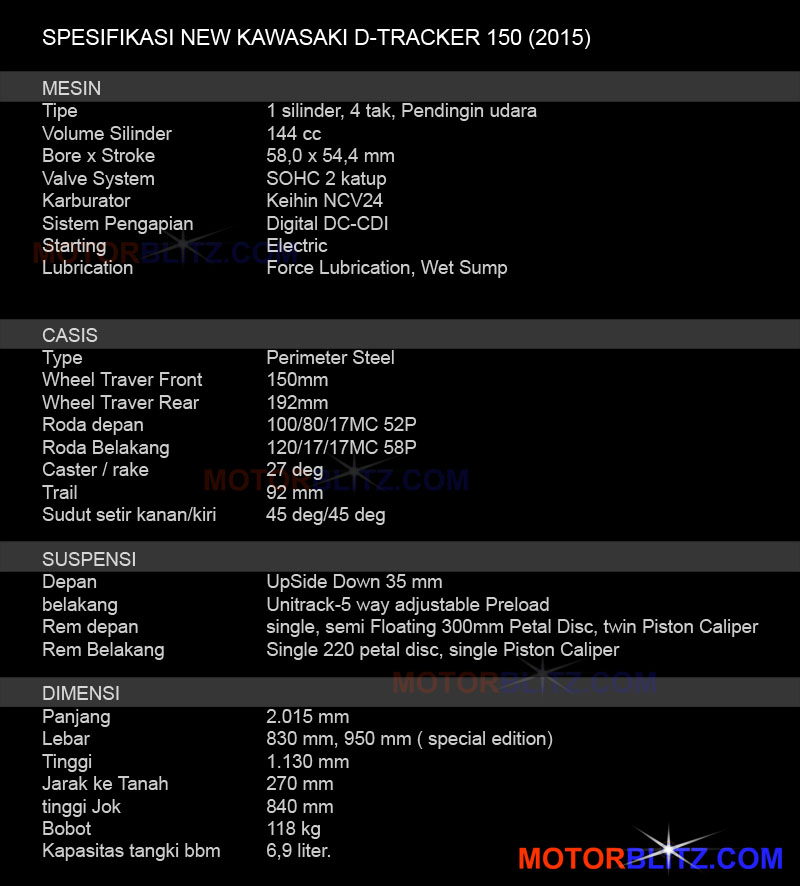 Published Agustus 4, 2015 at 800 × 886 in Spesifikasi New Kawasaki D-Tracker 150 2015.