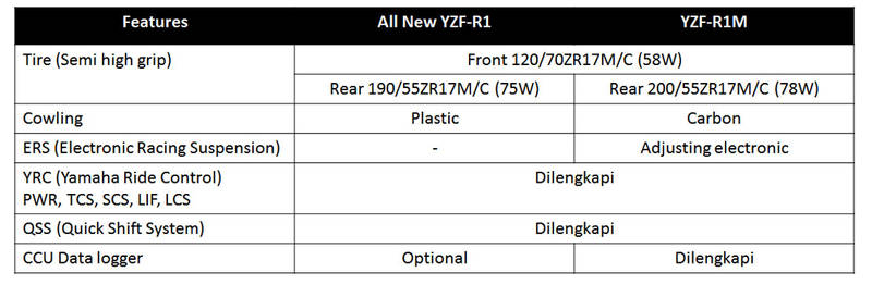Published Agustus 28, 2015 at 800 × 262 in Spesifikasi dan Perbedaan All New YZF R1 dan All New YZF R1 M.