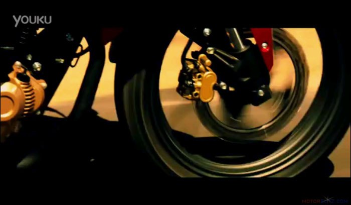 Untuk suspensi belakangnya tanpa menggunakan prolink atau hanya mengunakan sistem monoshock langsung ke swing arm, namun menariknya untuk suspensi depan sudah menggunakan shockbraker upside down :