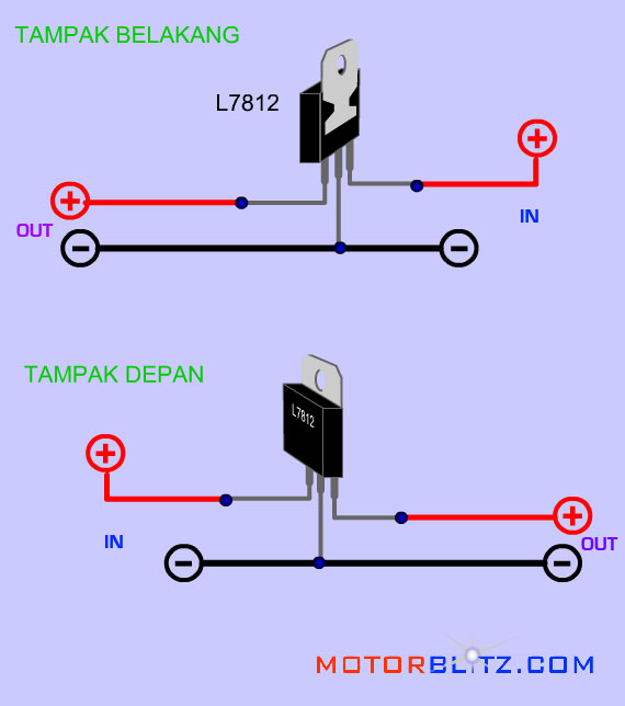 Rangkaian sederhana penstabil tegangan arus listrik untuk lampu LED motor.