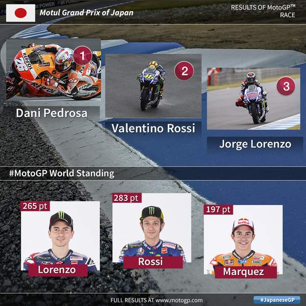 Published Oktober 12, 2015 at 600 × 600 in Race Motegi MotoGP 2015, Lorenzo down Pedrosa tampil gemilang.