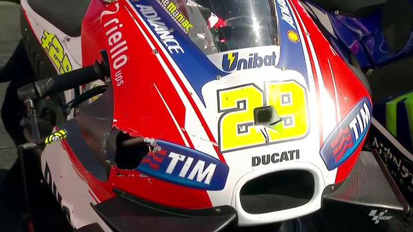 Published Oktober 19, 2015 at 599 × 337 in Detail foto Iannone tabrak Seagull atau burung camar di Sirkuit Phillip Island MotoGP 2015.