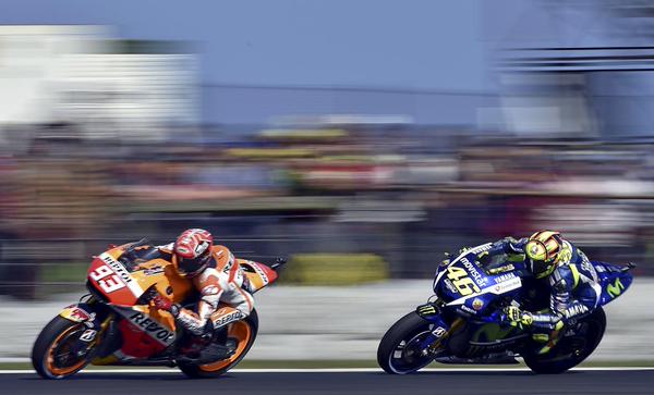 setelah berhasil menyalip Marquez terlihat Rossi hampir terjatuh hingga kaki kirinya terangkat ke atas karena kaki kanannya menyentuh aspal ketika menikung ke kanan terlalu dalam, Rossi menengok ke belakang dan Marquez langsung menyalip Rossi dan berada di depan Rossi. Di awal lap 6 setelah track lurus kembali Rossi salip Marquez, entah apa penyebabnya kaki kiri Rossi kembali bergerak, Rossi menengok kebelakang dan mengangkat tangannya. Marquez kembali mengincar Rossi dengan jarak dekat dan berhasil menyalip Rossi. Awal lap 7 posisi masih Pedrosa di depan, kedua Lorenzo dan di belakangnya Marquez dengan gap sekitar 2,7 detik. Rossi mati-matian melawan Marquez hingga motor yang ditungganginya terlihat tidak stabil bergerak ke kiri kanan dengan cepat, namun kembali Rossi berhasil menyalip Marquez di tikungan dan Marquez pun tidak mau kalah, terlihat Marquez hampir menyentuh Rossi dan melakukan pengereman mendadak. Marquez berakselerasi dengan cepat langsung merangsek ke depan salip Rossi, namun beberapa saat kemudian Rossi pun berhasil menyalip Marquez dan terlihat di tikungan ke arah kanan Marquez masih ingin menyalip Rossi dengan akselerasi penuh, sedangkan dengan sedikit menoleh Rossi melambat dan akibatnya posisi keduanya terlalu dekat dan akhirnya Marquez crash.