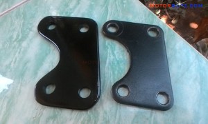1.Untuk mengatasi masalah yang pertama yaitu jarak antara kaliper rem dengan cakram terlalu jauh ini braket variasi (adaptor) harus disesuaikan. Caranya mau gak mau adaptor harus diganti dengan jarak baut yang lebih pendek dan mau gak mau juga solusinya harus ke tukang bubut untuk membuat adaptor cakram baru.