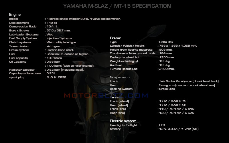 YAMAHA M-SLAZ MT-15 SPECIFICATION