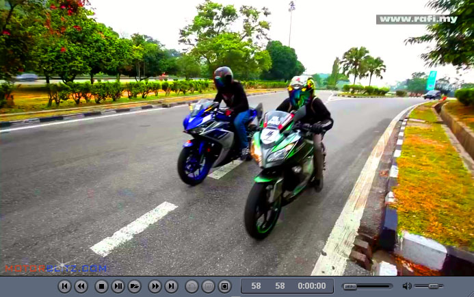 Published Januari 10, 2016 at 693 × 434 in Drag Ninja 250 SE (Special Edition) vs Yamaha R25 versi Jalanan.
