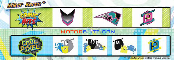 Biar motornya tambah keren ada juga aksesoris variasi stiker ori untuk BeAT Pop Comic Hit maupun Cool pixel 2016 :