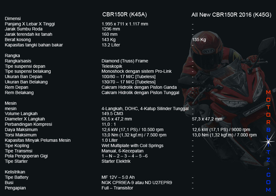 spesifikasi baru cbr150r 2016 dan perbedaan 2