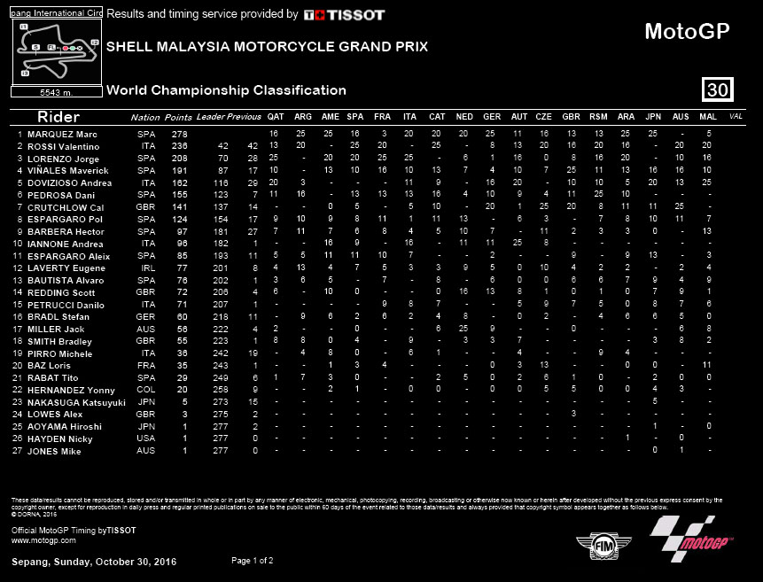 • Race motoGP Sepang 2016, Marquez Crash, Dovi dan Duo Yamaha Podium. November 4, 2016