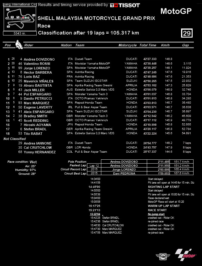 • Race motoGP Sepang 2016, Marquez Crash, Dovi dan Duo Yamaha Podium. November 4, 2016