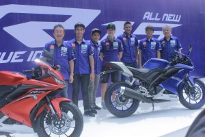 Motorblitz.com. Bro & Sis, setelah sekian lama akhirnya Yamaha Indonesia mengeluarkan New Yamaha R15 di tahun 2017 ini. Selintas New Yamaha R15 versi 3 ini terlihat masih menggunakan swing arm aluminium, rangka deltabox, dan masih tetap menggunakan mesin 1 silinder SOHC 4 katup berpendingin cair dan tentunya dengan silinder diasil dan piston forged. Namun jika diperhatikan lebih jauh, New Yamaha R15 v3 sudah menggunakan shockbreaker depan upside-down dan dilihat dari spesifikasi nya, mesin New Yamaha R15 v3 telah disematkan system VVA mirip dengan Yamaha NMax yang pernah dibahas di sini — -> https://motorblitz.com/2015/02/20/detail-cara-kerja-vva-atau-variable-valves-actuation-di-mesin-yamaha-nmax-150-blue-core/