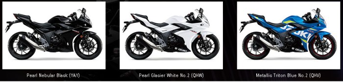 Nah mengenai warna GSX250R mempunyai 3 pilihan warna :