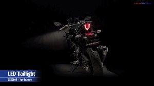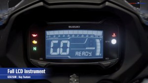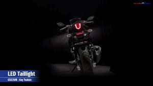 Dilihat dari desainya pun sangat menarik dengan menggunakan lampu LED untuk lampu senja depan dan lampu belakang. Panel meter indikator GSX250R terlihat futuristic dengan menggunakan full (LCD negative), panel meter ini berfungsi sebagai indikator speedometer, tachometer, posisi gear dan RPM, odometer, pengukur jarak tempuh, indicator BBM, pengukur konsumsi BBM rata-rata, indicator waktu penggantian oli, dan fungsi jam.