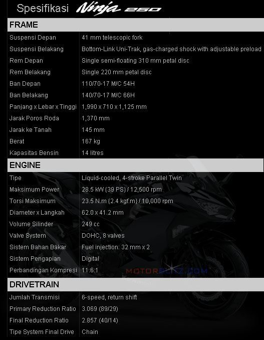 • Spesifikasi All New Kawasaki Ninja 250 2018. Januari 10, 2018