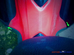 Pertama kita perhatikan terlebih dahulu yang ada di pinggir tebeng, kita lepas dulu baut-baut yang ada di bagian atas tebeng seperti yang ditunjukan tanda panah di gambar di bawah ini :